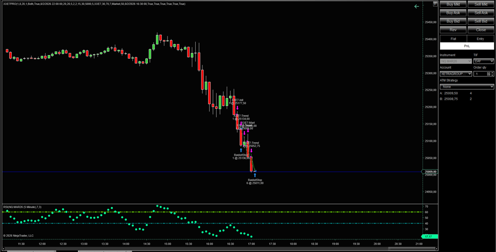 Xxe-7 Pro for NinjaTrader 8 is an advanced automated trading system designed for professional futures traders. It combines a powerful trend breakout core with dynamic hedging to capitalize on impulsive moves in high-liquidity markets, while intelligently managing risk through progressive trailing exits. Optimized for volatile sessions and macro events, it delivers consistent performance in NQ and YM futures.